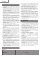 Italiano Nell’uso e nella manutenzione degli utensili elettrici devono essere osservate le normative di sicurezza e i criteri prescritti in ciascun paese. MODIFICHE: Gli utensili elettrici Hitachi vengono continuamente migliorati e modificati per includere le più recenti innovazioni tecnologiche. Di conseguenza, alcuni pezzi (p.es. numero di codice e/o design) possono essere modificati senza preavviso.