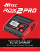 Introduction Congratulations on purchasing Hitec’s RDX2 Pro Dual Balance Charger. The RDX2 Pro features independent circuits allowing you to charge two batteries simultaneously, regardless of chemistry or capacity. The RDX2 Pro also features integrated balancing for six-cell Lithium-Polymer (LiPo), Lithium-Ferrite (LiFe) and Lithium-Ion (Li-Ion), as well as the latest high voltage Lithium-Polymer (LiHV) batteries.