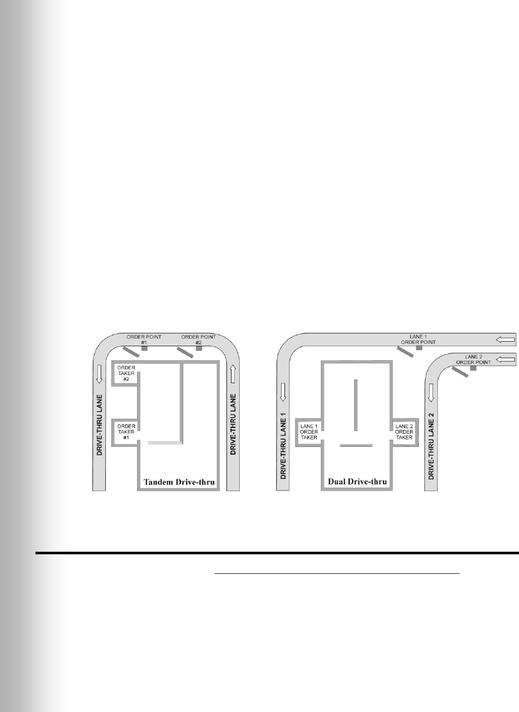 Figure 12. Typical tandem and dual drive-thru layouts