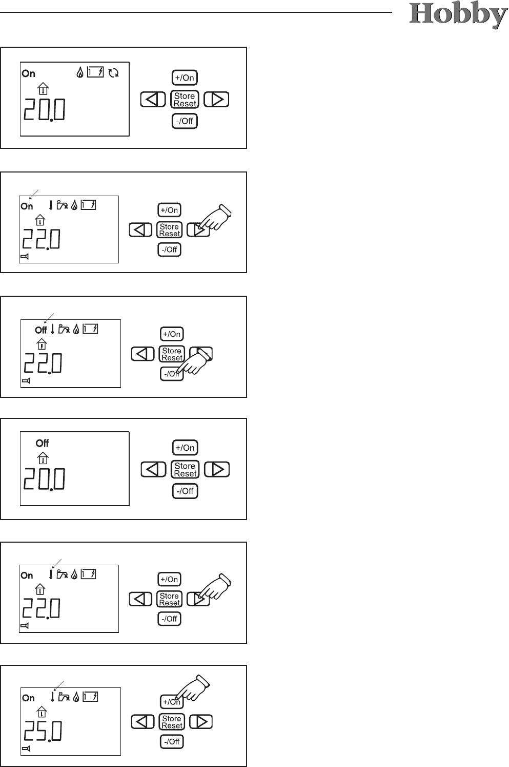 Drücken Sie den Knopf mit dem Pfeil bis „On”