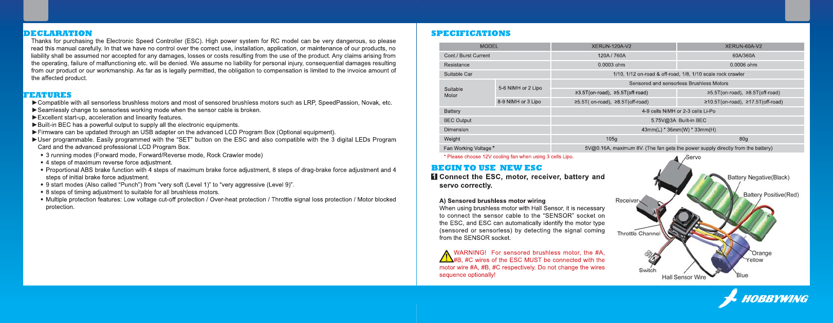 X-Car 60A Brushless Car ESC (sensored/sensorless)
