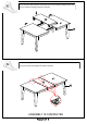 I. Carefully place the table top (#1) on a protected surface. II. Align the table legs (#2) to the pre-drilled holes on the corners of the table top (#1). III. Prepare 8 bolt assemblies by FIRST inserting the lock washer (#C) onto the bolt (#B) then the flat washer (#D) onto that SAME bolt (#B). Insert into the corners and secure using the wrench (#A). To remove the leaf, unlock the latches located under the table top (#1).