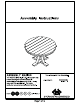 1. Carefully place the table top (#1) face down onto a protected surface. Align the support shelf (#6) to the table top (#1) 3. Insert the bolt assemblies into the corner holes of the support shelf (#6) and secure using the Allen wrench (#E). 2. Prepare 4 bolt assemblies by first inserting the lock washer (#C) onto the bolt (#D) then the flat washer (#B) onto that SAME bolt (#D). Adjust the leveler according to the ground level. Turn the leveler clockwise or counterclockwise, respectively.