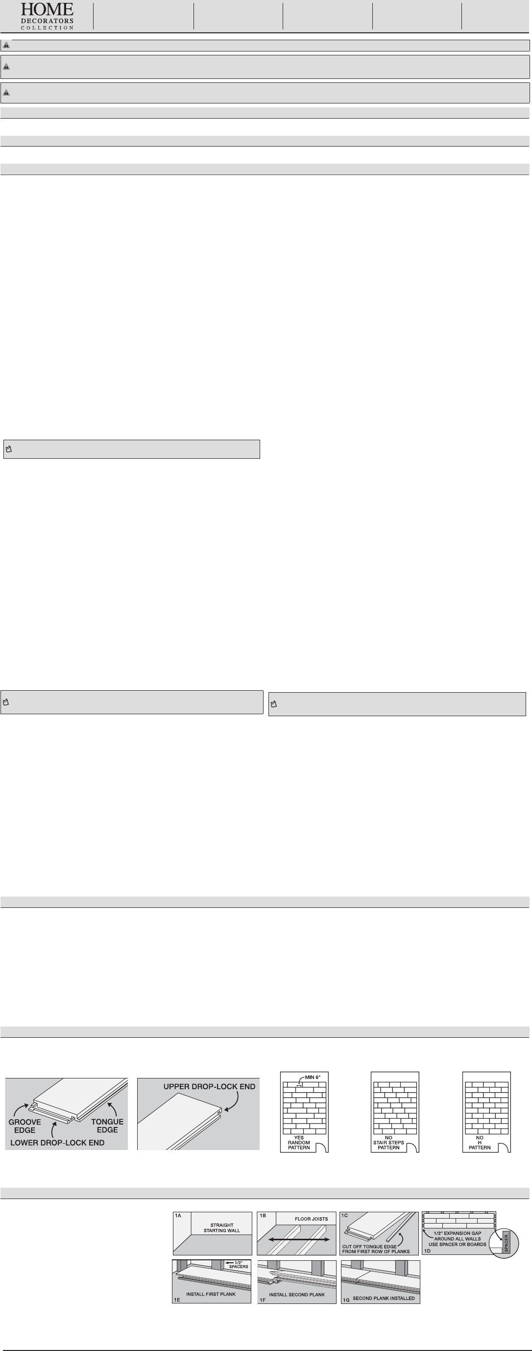 Additional Supplies for Glue-Down Method: Flooring adhesive • Trowels • Adhesive remover for selected