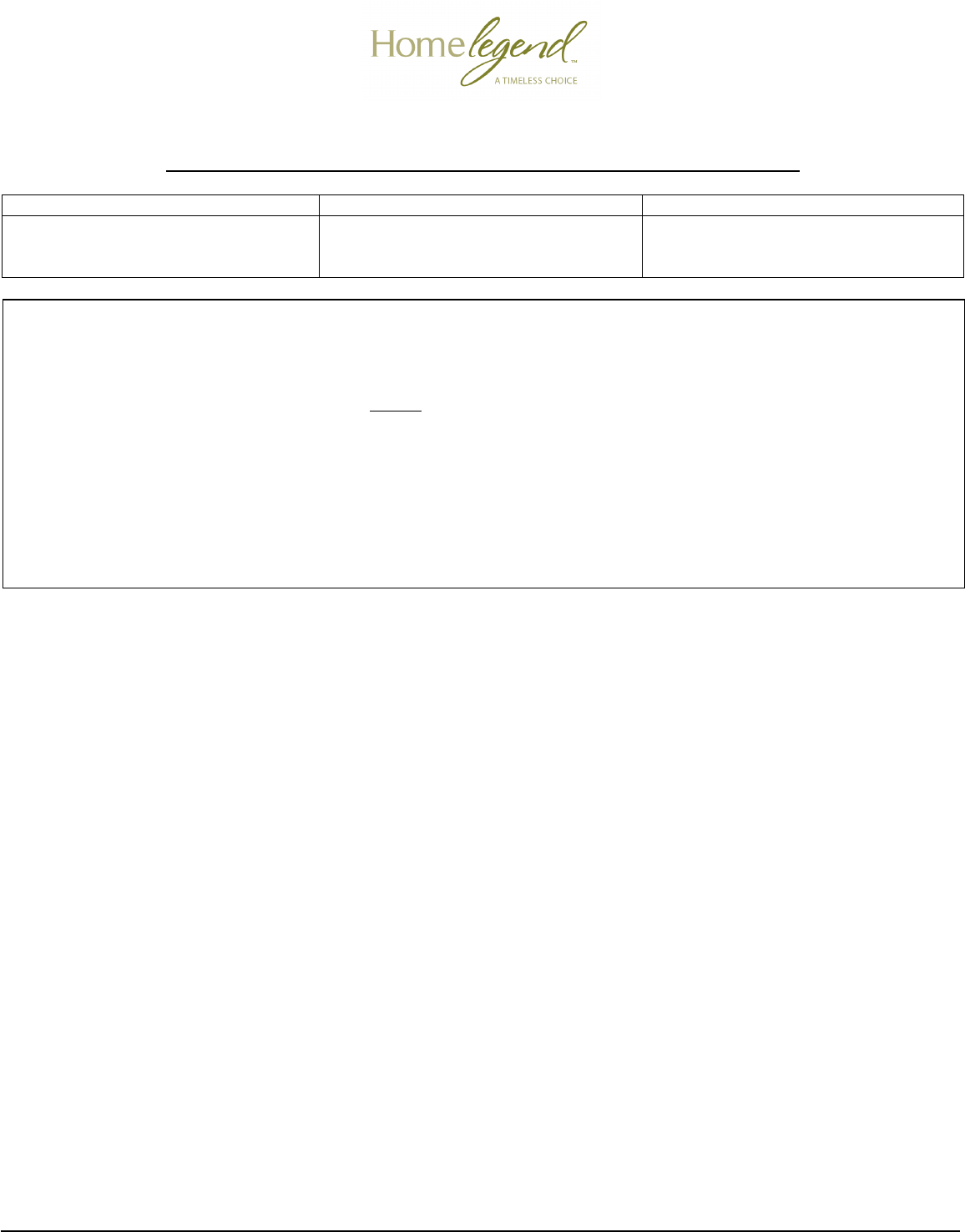 Visit homelegend.com for latest version of installation instructions.