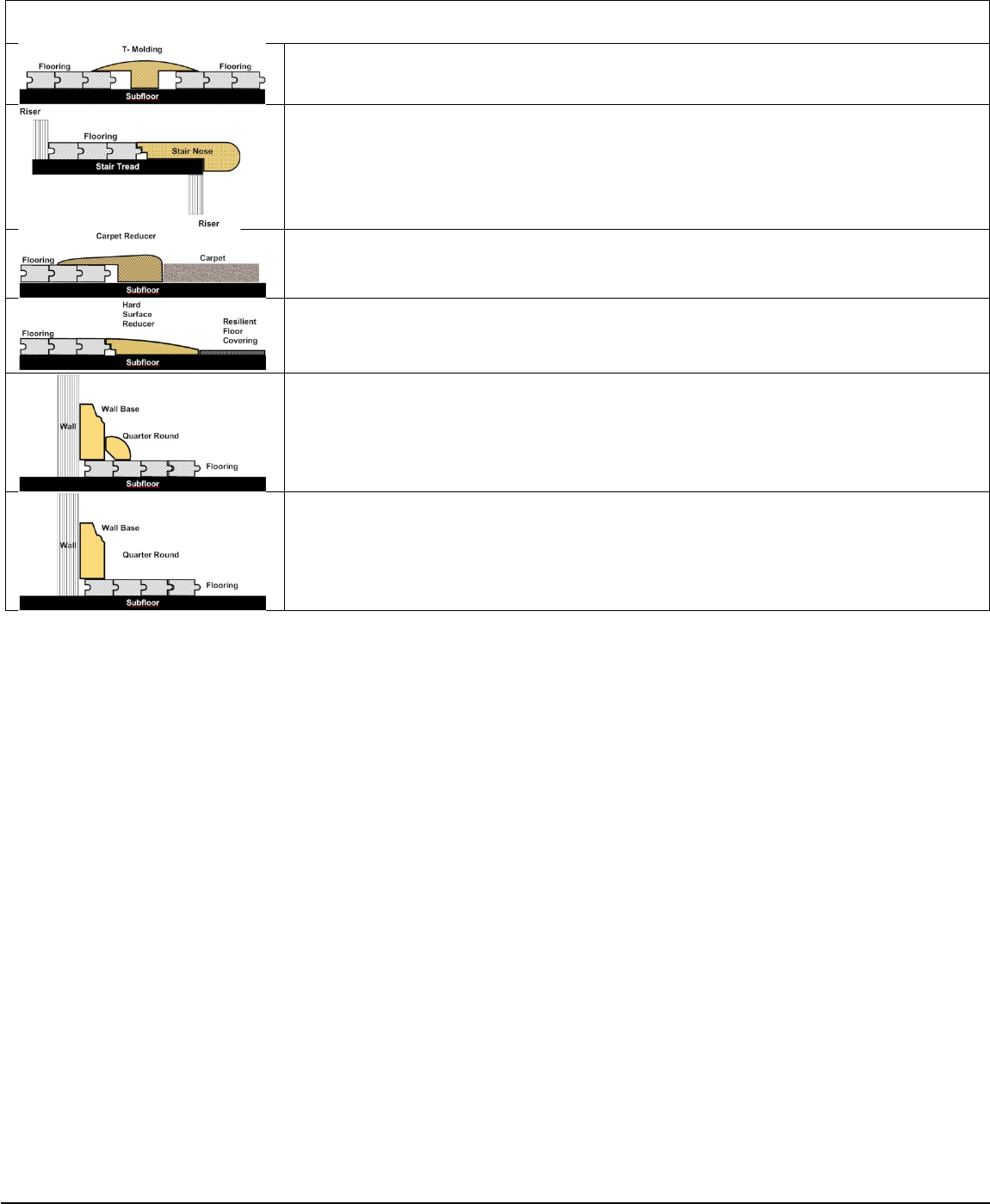- Tape measure • Moisture meter (wood, concrete or both) • Chalk line & chalk • Hammer • Electric power saw • Carbide tipped saw blade for fine cut • NIOSH-designated dust mask • Hand saw or jamb saw • Eye protection • Straight edge or Spacers • Pry Bar...