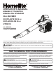 26cc Blower OPERATOR’S MANUAL MANUEL D’UTILISATION MANUAL DEL OPERADOR Soufflante de 26 cc Sopladora de 26 cc UT09510 ALL VERSIONS / TOUTES LES VERSIONS / TODAS LAS VERSIONES WARNING: The engine exhaust from this product contains chemicals known to the State of California to cause cancer, birth defects, or other reproductive harm. CALIFORNIA PROPOSITION 65 SERVICE For parts or service, contact your nearest Homelite authorized service dealer.