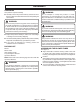 SPECIFIC SAFETY RULES Always hold the blower in your right hand during blower operation. Refer to the Operation instructions later in this manual for proper position during blower operation and additional information. To reduce the risk of hearing loss associated with sound level(s), hearing protection is required. To reduce the risk of injury associated with contacting rotating parts, stop the engine before installing or removing attachments.