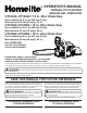OPERATOR’S MANUAL MANUEL D’UTILISATION MANUAL DEL OPERADOR UT10544, UT10546 / 14 in. 35cc Chain Saw Scie à chaîne de 35 cc de 356 mm (14 po) Motosierra de 35 cm (14 pulg.), 35 cc UT10564, UT10566 / 16 in. 38cc Chain Saw Scie à chaîne de 38 cc de 406 mm (16 po) Motosierra de 40 cm (16 pulg.), 38 cc UT10584, UT10586 / 18 in. 42cc Chain Saw Scie à chaîne de 42 cc de 457 mm (18 po) Motosierra de 45 cm (18 pulg.), 42 cc (ALL VERSIONS) (TOUTES LES VERSIONS) (TODAS LAS VERSIONES) ENGINE/EVAP. FAMILY: *HCPS.