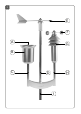 Mounting • • Step 2: • • • • Slide the cover onto pipe 2 from the bottom to the top until it reaches its end stop. Turn the cover anti-clockwise to fix it. Remove the anemometer (F) from its packaging. Put the anemometer to pipe 3 (H) above the main sensor (G). Please make sure that the notch of the rotary axis matches with the screw hole. Fasten the anemometer with the screw.
