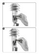 Montage • • Schieben Sie die Abdeckung auf Rohr 2 von unten bis zum Anschlag nach oben. Drehen Sie die Abdeckung einmal gegen den Uhrzeigersinn, um sie zu fixieren. Schritt 2: • • • • Nehmen Sie das Anemometer (F) aus der Verpackung. Setzen Sie das Anemometer auf das Rohr 3 (H) über den Hauptsensor (G). Achten Sie dabei darauf, dass die Einkerbung an der Dreh-Achse mit dem Schraubloch übereinstimmt. Schrauben Sie das Anemometer fest.