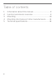 Table of contents 1 2 3 4 5 8 Information about this manual......................................9 Function and device overview.......................................9 Mounting...........................................................................10 Mounting into frames of other manufacturers......... 11 Technical specifications.................................................