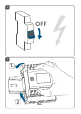 Inbetriebnahme Das Weiterverbinden (Durchschleifen) von Leitern über die Netzklemmen des Geräts zu anderen Geräten ist nicht erlaubt! • • • Schließen Sie externe Taster/Schalter an die Anschlussklemme IN1 bis IN3 (E) an (s. Abbildung 7). Setzen Sie die Abdeckung des Stromkreisverteilers wieder auf. Schalten Sie die Haussicherung wieder ein (s. Abbildung 8), um den Anlernmodus des Geräts zu aktivieren (s. „5.3 Anlernen“ auf Seite 27).