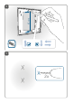 Inbetriebnahme 5.2 Montage Bitte lesen Sie diesen Abschnitt erst vollständig, bevor Sie mit der Montage beginnen. Sie können den Wandtaster • mit den mitgelieferten doppelseitigen Klebestreifen oder • mit Schrauben (3,0 x 30 mm) und Dübeln (5 mm) an der Wand befestigen. 5.2.1 Klebestreifenmontage Achten Sie darauf, dass der Montageuntergrund glatt, eben, unbeschädigt, sauber, fett- sowie lösungsmittelfrei und nicht zu kühl ist, damit der Klebestreifen langfristig haften kann.