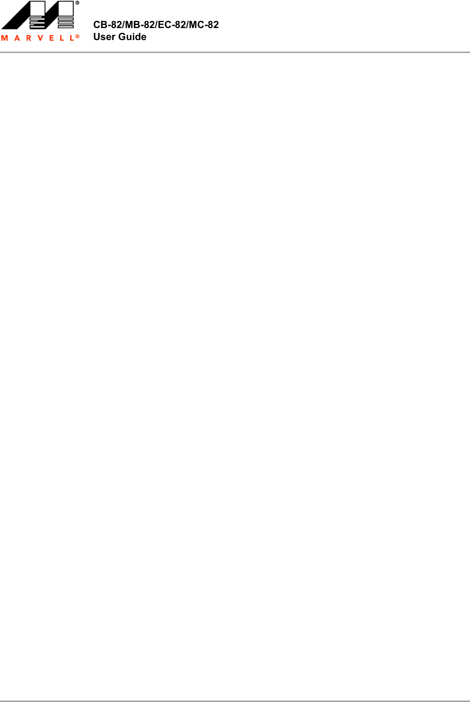 CB-82/MB-82/EC-82/MC-82 User Guide THIS PAGE INTENTIONALLY LEFT BLANK Doc. No. MV-S800473-00 Rev. B Page 68 CONFIDENTIAL Document Classification: Proprietary Information Copyright © 2007 Marvell August 14, 2007, 2.