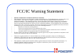 FCC/IC Warning Statement • • • • • • • Federal Communication Commission Interference Statement This equipment has been tested and found to comply with the limits for a Class B digital device, pursuant to Part 15 of the FCC Rules. These limits are designed to provide reasonable protection against harmful interference in a residential installation.