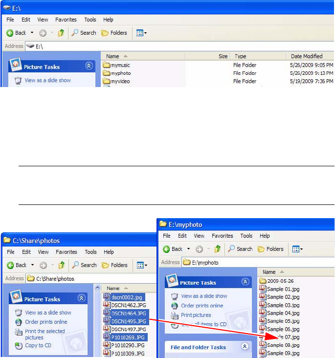 Note: Drag photos from your PC into the myphoto folder in the HP DreamScreen. Drag