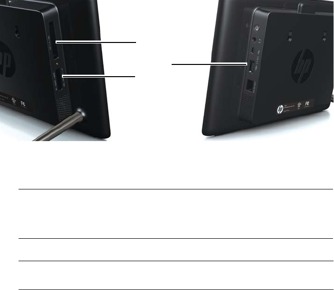 photos, music, and/or video into the appropriate card slot or USB port as illustrated.