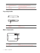 (3) 3.5 mm Audio jack Insert 3.5–mm with 3 and 4 pin support for audio. (4) Charging/Communications Port Use to connect the mini-USB synchronization cable. (5) Reset Use to reset the Travel Companion. (6) SD Card Slot Insert a Secure Digital (SD) storage card with the label side up for data storage. Top components (1) Component Function Microphone Use to record voice notes. Back components (1) 4 Component Function Stylus Use to select elements on the screen and to enter information.