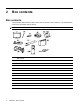 2 Box contents Box contents This illustration depicts the items that come in the box with the Travel Companion. Use this illustration to become more familiar with the device. NOTE: Box contents vary by model.