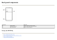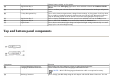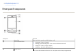 z z Left and right side components Back panel components Front panel components Component (1) (2) (3) Power Key Power/Wireless LEDs Function Press and hold to switch your HP iPAQ on or off. ● Solid amber– Battery charging ● Flashing green and Solid green – One or more notifications received ● Solid green – Battery charge complete ● Solid Blue – WLAN or Bluetooth is on Touch Screen Use to view the contents on the screen.