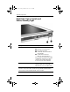 331734-001.book Page 16 Monday, July 14, 2003 3:47 PM External Components Back: Memory and Mini PCI Compartment Component Description 1 Contains one memory slot for a PC133-compliant memory module. Also, holds an optional mini PCI board such as a wireless board. (A mini PCI board is included with some tablet PC models.