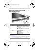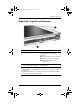 331734-001.book Page 13 Monday, July 14, 2003 3:47 PM External Components Top: Card Slots, Buttons and Tether Eyelet Component Description 1 PC Card slot Supports an optional Type I or Type II 32-bit (CardBus) or 16-bit PC Card. 2 PC Card eject button Ejects an optional PC Card from the PC Card slot. 3 Tablet PC tether eyelet Used with the tether eyelet on the pen, enables you to tether the pen to the tablet PC. 4 SD (Secure Digital) Card slot Supports an optional SD Card.
