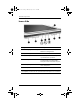 331734-001.book Page 11 Monday, July 14, 2003 3:47 PM External Components Top: Connectors and Jacks Component Description 1 USB connector Connects an optional USB 2.0- or 1.1-compliant device.* 2 External MultiBay Connects an optional USB 2.0- or 1.1-compliant device.* connector 3 RJ-11 telephone jack Connects a modem cable. 4 RJ-45 network jack Connects an Ethernet network cable. 5 External monitor Connects an optional VGA external monitor or projector.