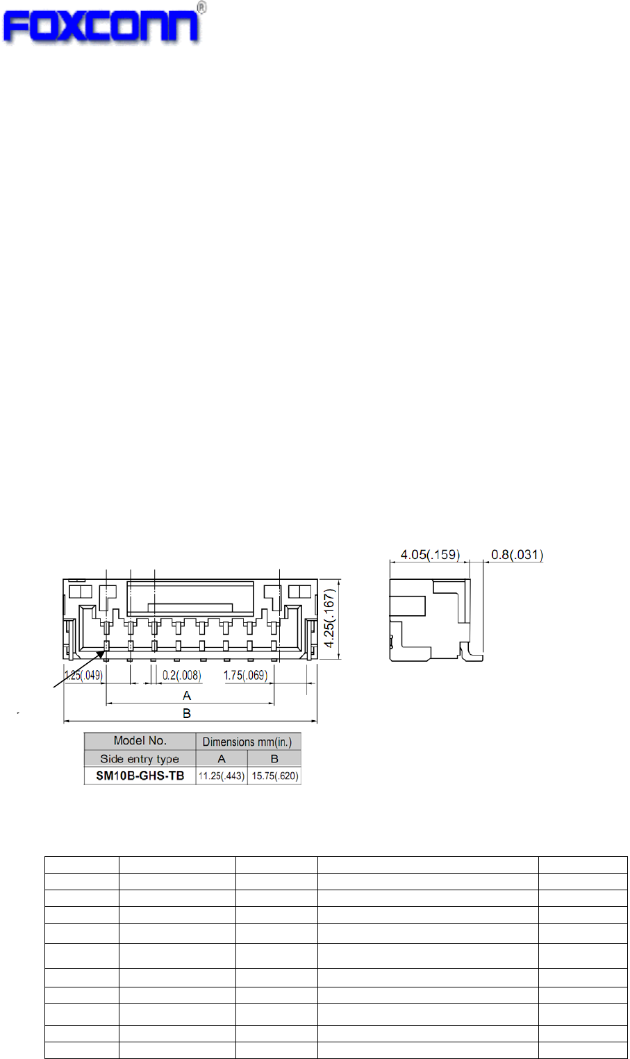 JST WTB connector, Part Number: SM10B-GHS-TB(LF)