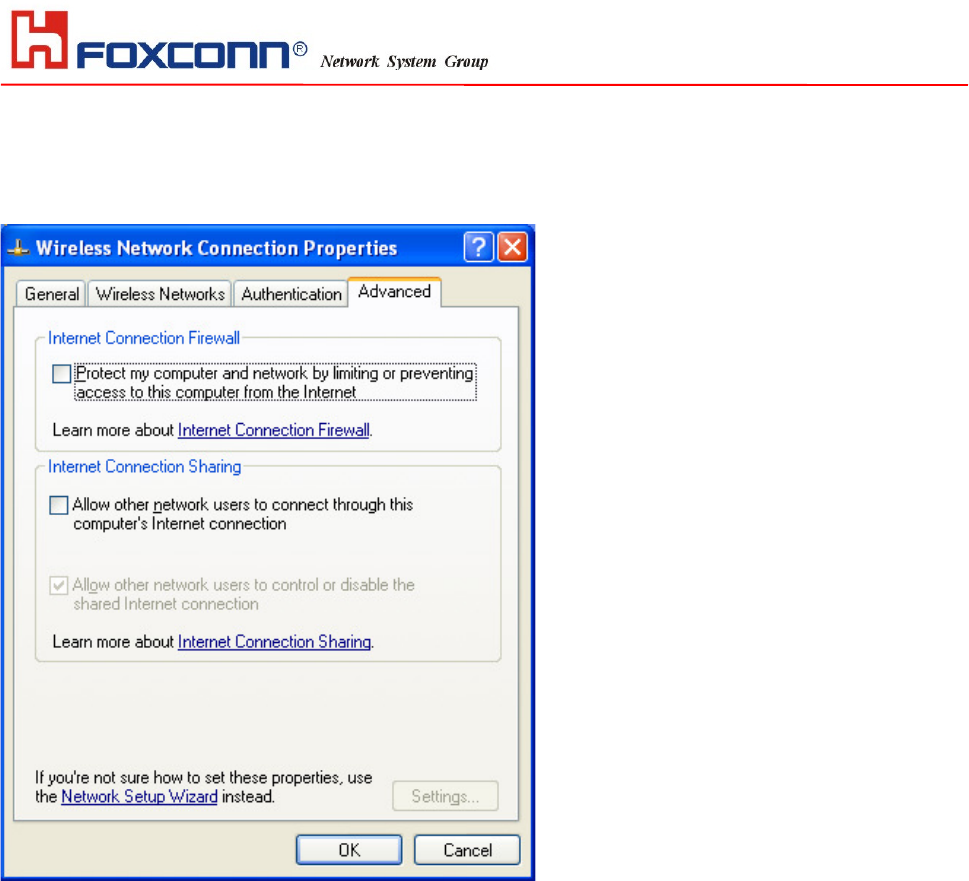 The ‘Advanced’ window offers Firewall and Internet Connection Sharing functions.