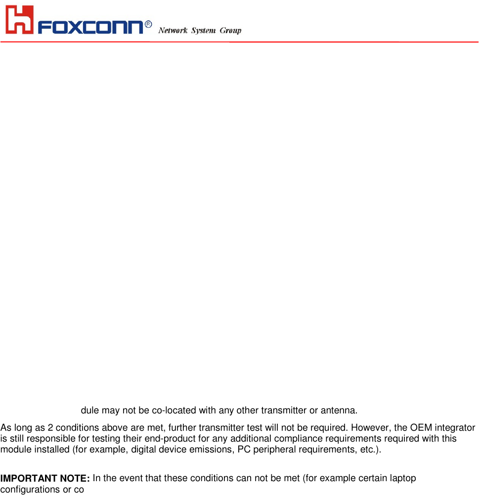 2) The transmitter module may not be co-located with any other transmitter or antenna,
