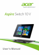 - © 2015. All Rights Reserved. Aspire Switch 10 V Covers: Aspire SW5-014 This revision: September 2015 Sign up for an Acer ID and enjoy great benefits Open the Acer Portal app to sign up for an Acer ID or sign in if you already have an Acer ID. There are three great reasons for you to get an Acer ID: • Build Your Own Cloud with Acer BYOC. • Get the latest offers and product information. • Register your device for warranty service. For more information, please visit the Acer BYOC website: www.acer.
