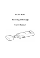 Chapter 1 About the 802.11b/g USB Dongle 1-1 Introduction The 802.11b/g USB Dongle allows you to access Wireless Local Area Networks (WLANs), share a local files with others in your network, access the Internet, and roam about the office—wirelessly. This wireless Local Area Network solution is designed for both large and small businesses, and it is scalable so that you can add users and new network features as your networking needs grow. The USB Dongle is a WLAN device that allows for access to 2.