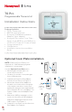T6 Pro Programmable Thermostat Installation Instructions Package Includes: • T6 Pro Thermostat • UWP Mounting System • Honeywell Standard Installation Adapter (J-box adapter) • Honeywell Decorative Cover Plate – Small; size 4-49/64 in x 4-49/64 in x 11/32 in (121 mm x 121 mm x 9 mm) • Screws and anchors • 2 AA Batteries • Installation Instructions and User Guide Optional Cover Plate installation NOTE: If Optional Cover Plate is not required, see “UWP Mounting System installation” on next page.