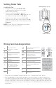 Montaje del termostato 1. Introduzca el excedente de cable en la abertura de la pared. 2. Cierre la tapa de la placa de la UWP. Debe permanecer cerrada sin quedar protuberante. 3. Alinee la UWP con el termostato y presione suavemente hasta que el termostato calce en su lugar. 4. Conecte el suministro de electricidad en la caja de interruptores de circuito o en el interruptor. Configuraciones del sistema operativo 1 Presione el botón Mode (modo) para pasar al siguiente modo disponible en el sistema.
