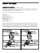 1 2 B B STEP 1: ATTACH FRONT TUBE SUPPORT. STEP 2: TIGHTEN BOLTS TO SECURE GUIDE 4 3 D) Note: Black 25mm Teflon Washer should be facing down. G C D STEP 3: CAREFULLY PULL CONSOLE WIRES THROUGH CONSOLE MAST AND ATTACH CONSOLE MAST. D) Note: Black 25mm Teflon Washer should be facing up. STEP 4: ATTACH PEDAL ARMS. 5 6 F A E STEP 5: ATTACH HANDLE BARS AND LOWER LINK ARMS. STEP 6: ATTACH PIVOTING FOOT PADS 7 STEP 7: ATTACH TENSION KNOB.