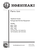 Parts List Steelheart Series Refrigerated Kitchen Equipment Models R1A, F1A R2A, F2A R3A, F3A Full Glass (FG), Full Solid (FS) Half Glass(HG), Half Solid (HS) hoshizakiamerica.
