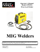 Operator’s Manual Model 135WFG Wire Feed Welder MIG Welders WARNING: Do not assemble, install, or operate this equipment without reading ALL of this manual and the safety precautions and warnings illustrated in this manual. KDAR Company 1 Mulch Lane St. Louis, MO 63044 Tel: (314) 692-8555 Fax: (314) 692-8578 Web Site: www.hotmaxtorches.