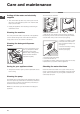 Care and maintenance EN Cutting off the water and electricity supplies • Turn off the water tap after every wash cycle. This will limit wear on the hydraulic system in the machine and help to prevent leaks. • Unplug the appliance when cleaning it and during all maintenance work. Cleaning the machine The outer parts and rubber components of the appliance can be cleaned using a soft cloth soaked in lukewarm soapy water. Do not use solvents or abrasives.