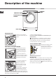 Description of the machine EN PORTHOLE DOOR CONTROL PANEL PORTHOLE DOOR HANDLE KICK STRIP PORTHOLE DOOR Always use the handle to open the porthole door (see figure). 3. extra compartment: Bleach ! The use of extra compartment 3 excludes the prewash function. washing additives compartment: for fabric softener or liquid additives. We recommend that the maximum level indicated by the grille is not exceeded, and that concentrated fabric softeners are diluted.
