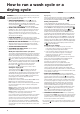 How to run a wash cycle or a drying cycle EN WARNING: before you use the Washer-dryer for the first time, run a wash cycle with detergent and no laundry, using the 90° cottons cycle without pre-wash. 1. SWITCH THE MACHINE ON. Press the button. All the indicator lights will illuminate for 1 second and the text AQUALTIS will appear on the display; the indicator light corresponding to the button will then remain lit in a constant manner and the START/PAUSE indicator light will flash. 2. SELECT THE PROGRAMME.