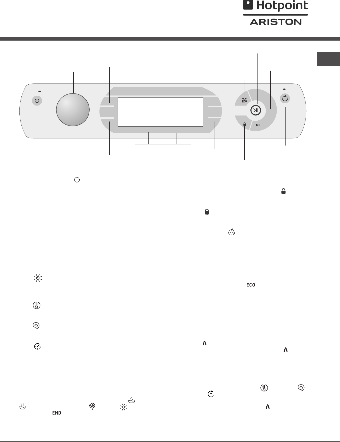 De tekst wordt verlicht als de wascyclus is beëindigd.