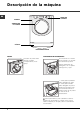Descripción de la máquina ES PANEL DE CONTROL PUERTA TIRADOR DE LA PUERTA ZÓCALO PATAS REGULABLES PUERTA CONTENEDOR DE DETERGENTES: Para abrir la puerta utilice siempre el tirador correspondiente (ver la figura). Se encuentra en el interior de la máquina y se accede a él abriendo la puerta. Para la dosificación de detergente, ver el capítulo Detergentes y ropa. 20 1 2 1. cubeta para el prelavado: utilice detergente en polvo. 2. cubeta para el lavado: utilice detergente en polvo o líquido.
