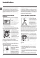 Installation GB ! Keep this instruction manual in a safe place for future reference. Should the appliance be sold, transferred or moved, make sure the instruction manual accompanies the washing machine to inform the new owner as to its operation and features. ! Read these instructions carefully: they contain vital information on installation, use and safety. inclination, measured according to the worktop, must not exceed 2°.