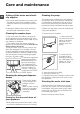 Care and maintenance GB Cutting off the water and electricity supplies Cleaning the pump • Turn off the water tap after every wash cycle. This will limit wear on the hydraulic system inside the washer-dryer and help to prevent leaks. The washer-dryer is fitted with a self-cleaning pump which does not require any maintenance. Sometimes, small items (such as coins or buttons) may fall into the pre-chamber which protects the pump, situated in its bottom part.