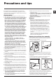 GB The machine is noisy. • There will always be some motor, pump and drum noise during spin. The machine wont spin properly. • Out of Balance detected when attempting to go into a spin cycle - If this happens the machine will continue to try to repeat the distribution of the load required before the machine will go into higher spin speeds - This will increase the programme time accordingly. This is a safety feature to prevent damage.