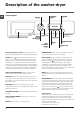 Description of the washer-dryer GB Control panel CLEANING ACTION ON/OFF button button DRYING button DISPLAY Detergent dispenser drawer WASH CYCLE SELECTOR MYCYCLE button START/PAUSE button with indicator light FUNCTION buttons buttons ANTI ALLERGY RINSE button DELAY button TEMPERATURE button CHILD LOCK button Detergent dispenser drawer: used to dispense detergents and washing additives (see “Detergents and laundry”).