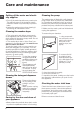 Care and maintenance GB Cutting off the water and electricity supplies • Turn off the water tap after every wash cycle. This will limit wear on the hydraulic system inside the washer-dryer and help to prevent leaks. • Unplug the washer-dryer when cleaning it and during all maintenance work. Cleaning the washer-dryer • The outer parts and rubber components of the appliance can be cleaned using a soft cloth soaked in lukewarm soapy water. Do not use solvents or abrasives.