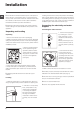 Installation GB ! This instruction manual should be kept in a safe place for future reference. If the washer-dryer is sold, transferred or moved, make sure that the instruction manual remains with the machine so that the new owner is able to familiarise himself/herself with its operation and features. ! Read these instructions carefully: they contain vital information relating to the safe installation and operation of the appliance. Unpacking and levelling Unpacking 1.