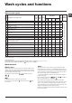 Wash cycles and functions Wash cycles Table of wash cycles Detergents Max. Max. Max. Cycle temp. speed Drying load Pre- Wash Bleach Fabric (kg) duration (°C) (rpm) Wash softener Description of the wash cycle 1400 - - 5 90° 1400 - 9 60° 1400 - 9 40° 1400 - 9 60° 800 - 4 40° 800 - 4 30° 0 - - 1 Woolmark Platinum (Wool): for wool, cashmere, etc.